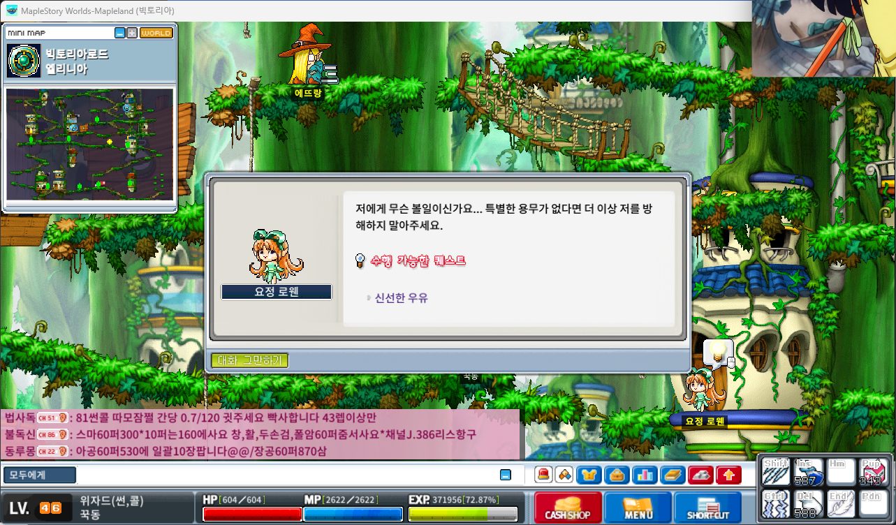 엘리니아에 요정 로웬에게 신선한 우유 퀘스트를 받아 준 뒤