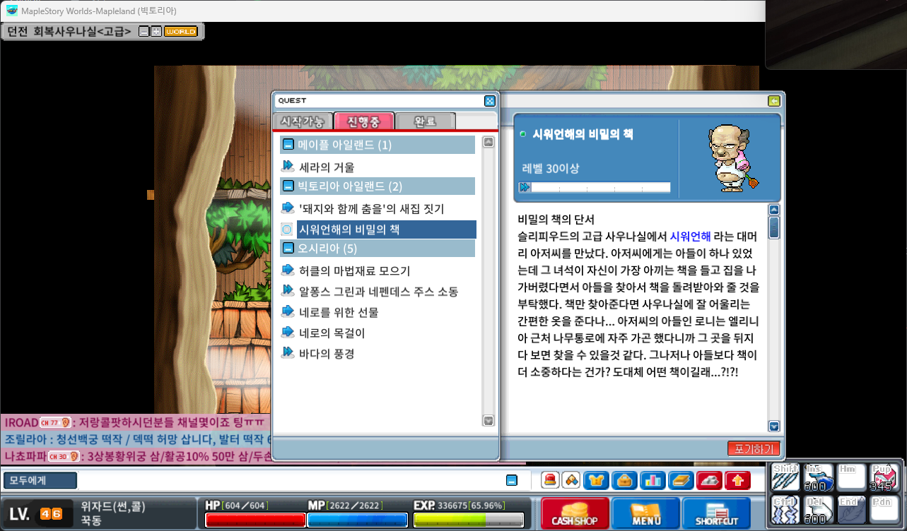 슬리피우드에 도착한 후 고급 사우나에 입장 후 시워언해 아저씨 만난 후 비밀의 책 퀘스트 받기